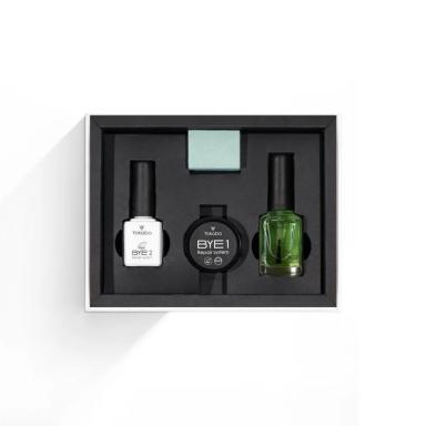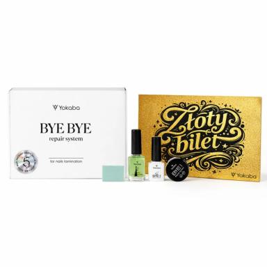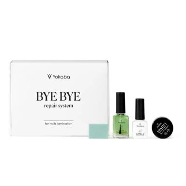 Bye Bye Repair System Yokaba to trzystopniowy, profesjonalny, wegański system regenerujący paznokcie, stworzony do laminacji i odbudowy cienkich, kruchych oraz osłabionych paznokci. Zabieg wygładza strukturę płytki, poprawia elastyczność i odporność, nadając zdrowy połysk. Regularne stosowanie w cyklu 4 tygodni (1 zabieg co 7 dni) przynosi widoczne wzmocnienie i poprawę kondycji paznokci.
